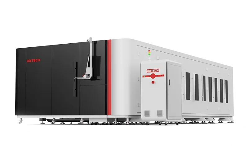 Vantagens da máquina de corte a laser de fibra DXTECH-SPT com mesa de troca e cobertura total para chapas e tubos metálicos