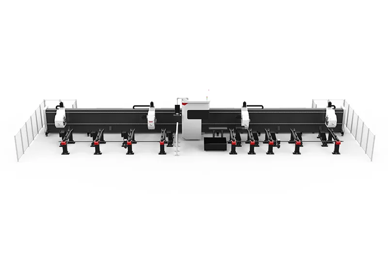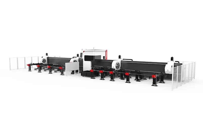 Máquina de Corte a Laser de Tubo Metálico com Chanfro de Alta Potência. Pode processar todos os tipos de tubos metálicos, como tubos redondos, quadrados, ovais e outros formatos especiais. É capaz de cortar a maioria dos materiais metálicos, como aço inoxidável e aço carbono. Adotando uma bancada de solda de aço carbono de alta qualidade, é mais estável e durável. É dividida em chanfro duplo, triplo ou quádruplo, oferecendo diversas opções. Pode realizar alimentação semi-automática manual, o que melhora significativamente a eficiência de corte. É especialmente projetada para corte de tubos em grande escala. Após o corte, as peças podem ser descarregadas automaticamente em diferentes áreas.