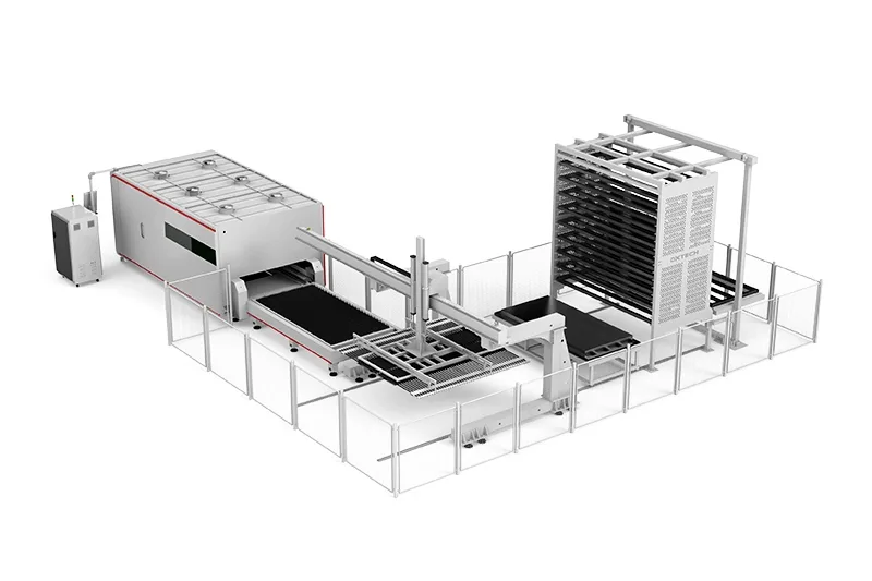 - Equipado com bandejas de matéria-prima e bandejas de material acabado, que podem realizar a transferência automática de volta ao armazém e atender às necessidades de chapas pequenas, médias, grandes e de diversas variedades.